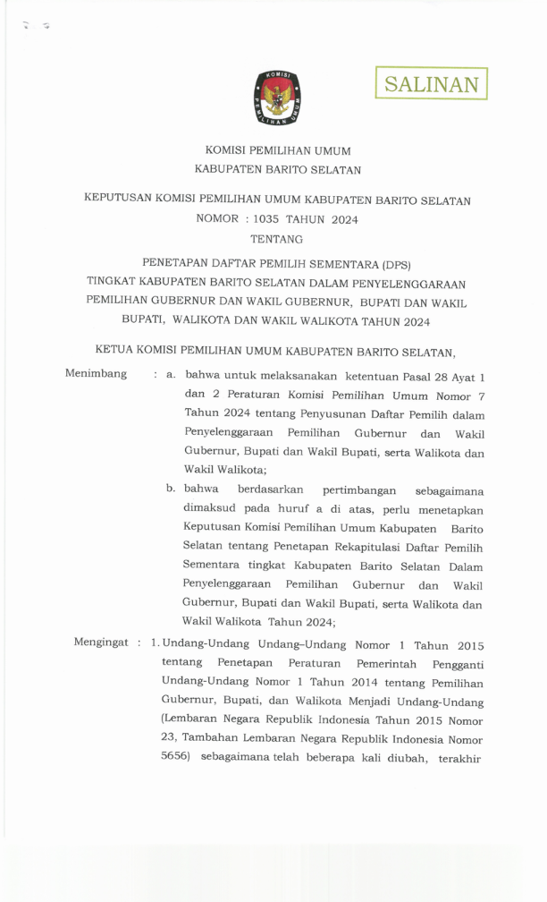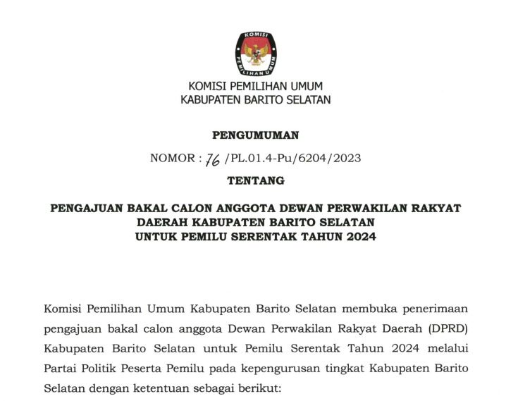 14. Materi peserta yang tidak terpilih tidak dikembalikan dan tidak akan dipergunakan oleh KPU Kabupaten Barito Selatan